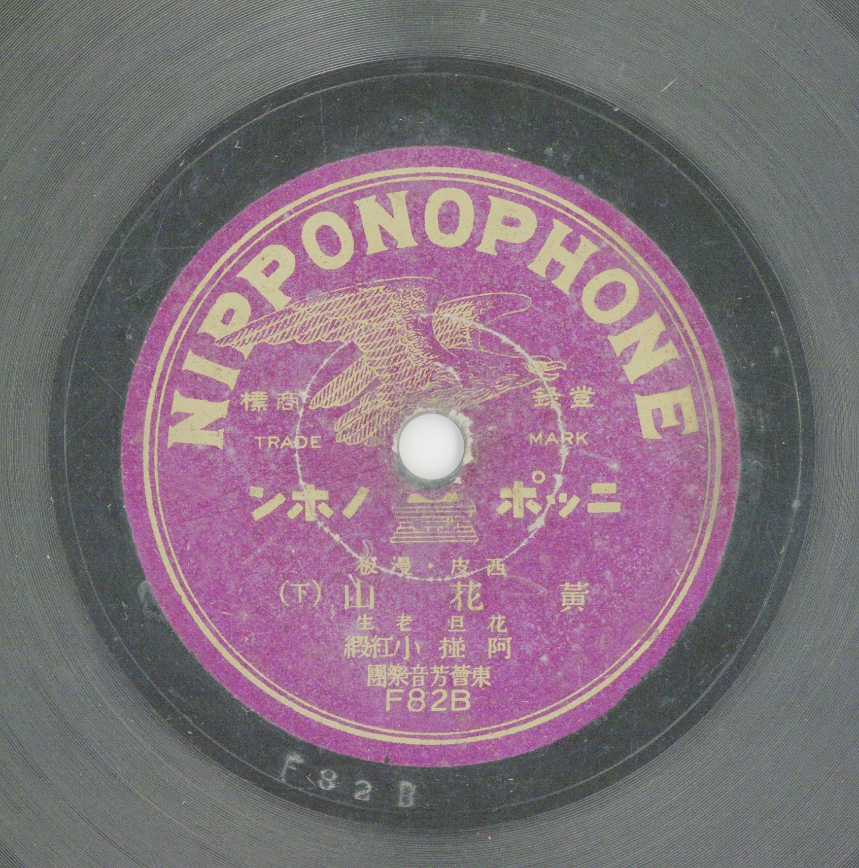 黃花山 (下) 演出者老生:阿掽、花旦:小紅緞演唱 東薈芳音樂團伴奏關鍵詞#小曲 #北管 #京音 #正音 #藝旦內容藝旦演唱的京劇唱片,小紅緞為臺北知名藝旦,由她演唱老生。 依據古倫美亞公司的錄音登記資料,這首錄音是1926年5月左右在臺北的錄音,這批錄音主要是由臺北兩大酒樓 (江山樓和東薈芳)之藝旦和曲師的京音和小曲,接著以日蓄鷹標唱片發行,可推測是1926年左右的唱片。聲音載體留聲機唱片發行編號日蓄 (鷹標紫色)F82專輯年份《西皮・慢板:黃花山》1926~29其他曲目A-黃花山 (上)來源專案臺史博館藏錄音發布(2026) 相關照片