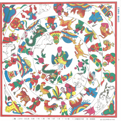 接下來,是阿元分享的,由文史研究者莊研育老師帶來的「葫蘆問(hôo-lôo-mn̄g)」解說。阿元說,從小在鹿港十宜樓周遭玩耍長大的莊研育老師,每到過年期間就是跟樓上樓下左鄰右舍的同輩孩子一起玩這個遊戲。在畫了各種祥瑞圖案的螺旋狀圖案上邊擲骰子邊前進,踩到不同的圖案會有不同的口訣跟意義,還有許多擲骰子時,還有互相嘲笑的口訣。