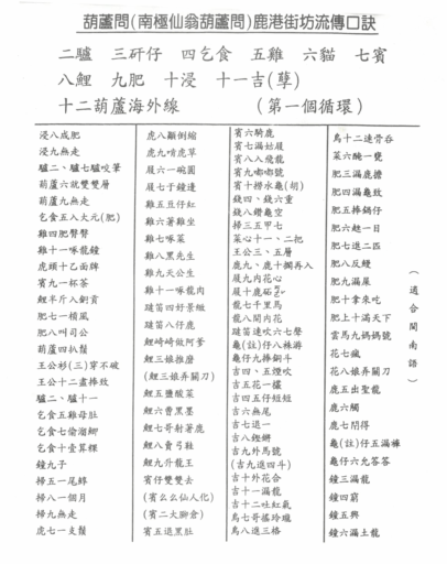 *[葫蘆問基本口訣]:1兔 2驢 3矸仔 4乞食 5雞 6貓 7賓 8鯉 9肥 10浸 11吉(孽) 12葫蘆倒頭幌(hàinn)